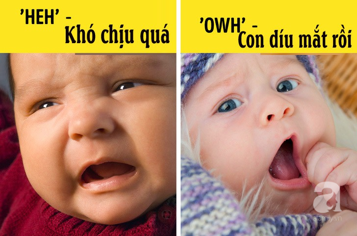 ‘Heh’ – Con cảm thấy không thoải mái!: Cảm giác khó chịu sẽ khiến cho em bé di chuyển, và giật tay chân của chúng. Tất cả những chuyển động này góp phần tạo ra âm thanh ‘Heh’, đặc biệt là khi miệng của em bé hơi mở.