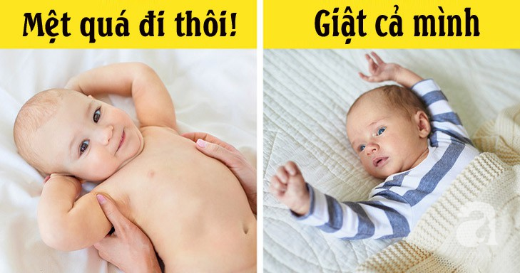 Giật tay: Chuyển động này có nghĩa là em bé đang sợ hãi. Một âm thanh lớn, ánh sáng mạnh hoặc thức dậy đột ngột có thể gây ra phản xạ giật mình. Những lúc như thế, em bé cần được bố mẹ vỗ về, an ủi.